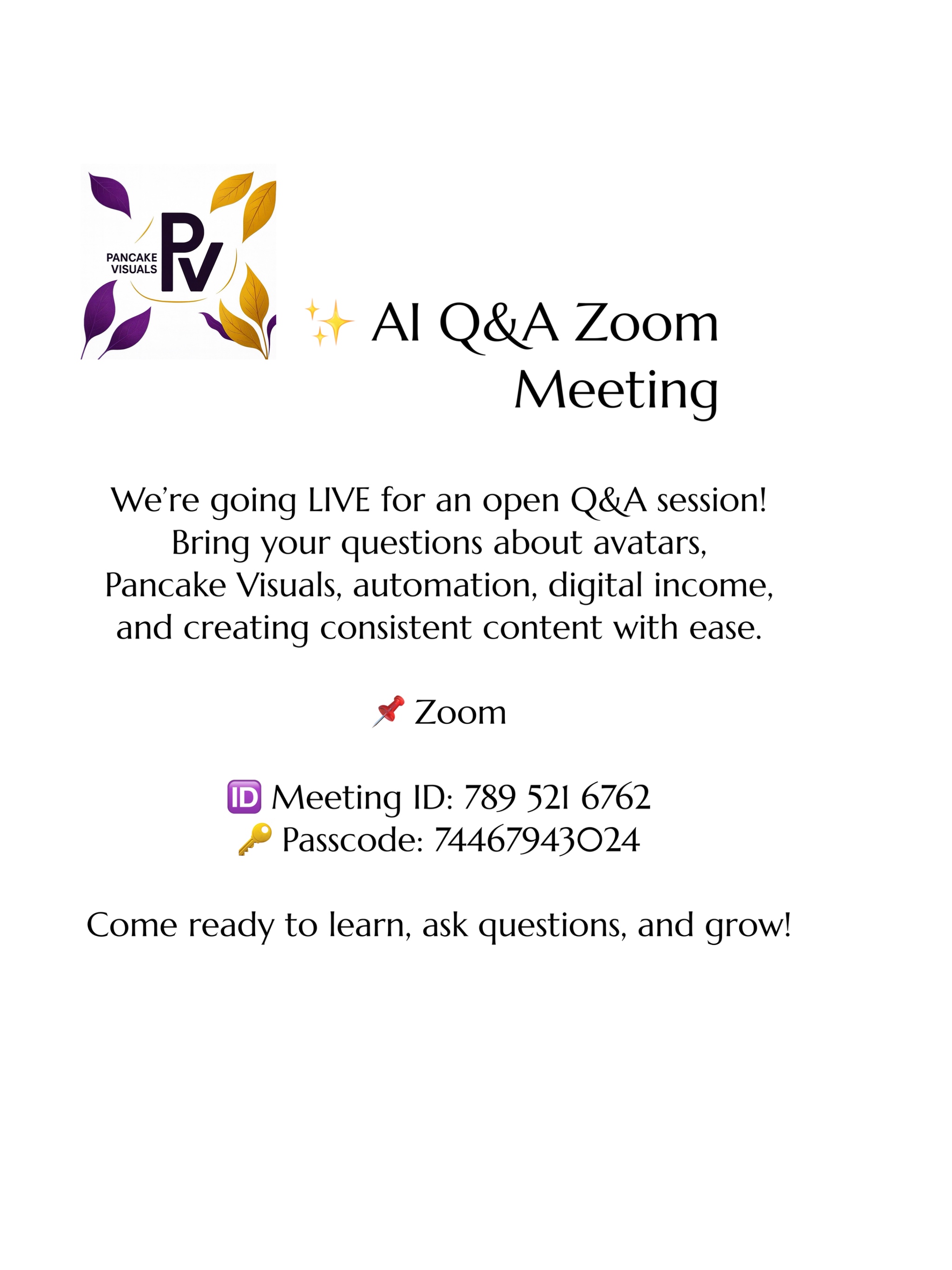 If you want to learn avatars, automation, and how to create visuals that work while you rest — meet me on Zoom.