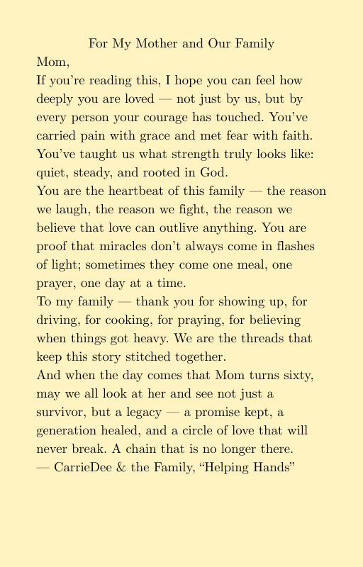 Whether you’re a caregiver, a survivor, or someone walking through your own storm, this book will remind you that healing is possible — not just in the body, but in the spirit.