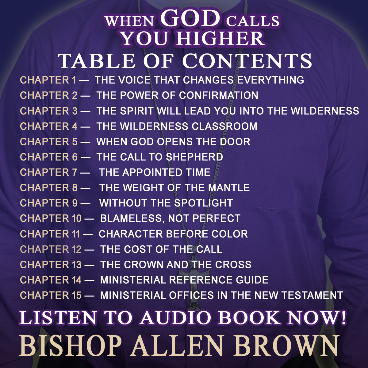 Have you ever sensed that God was calling you to something greater—but weren’t sure how to respond? When God Calls You Higher is a spiritual guide that helps ministers, leaders, and believers understand what it truly means to be chosen, prepared, and elevated by God. Through personal testimony, biblical wisdom, and practical insight, Bishop Allen Brown reveals the stages of the call—from confirmation to consecration—and how to walk in your assignment with humility and power.