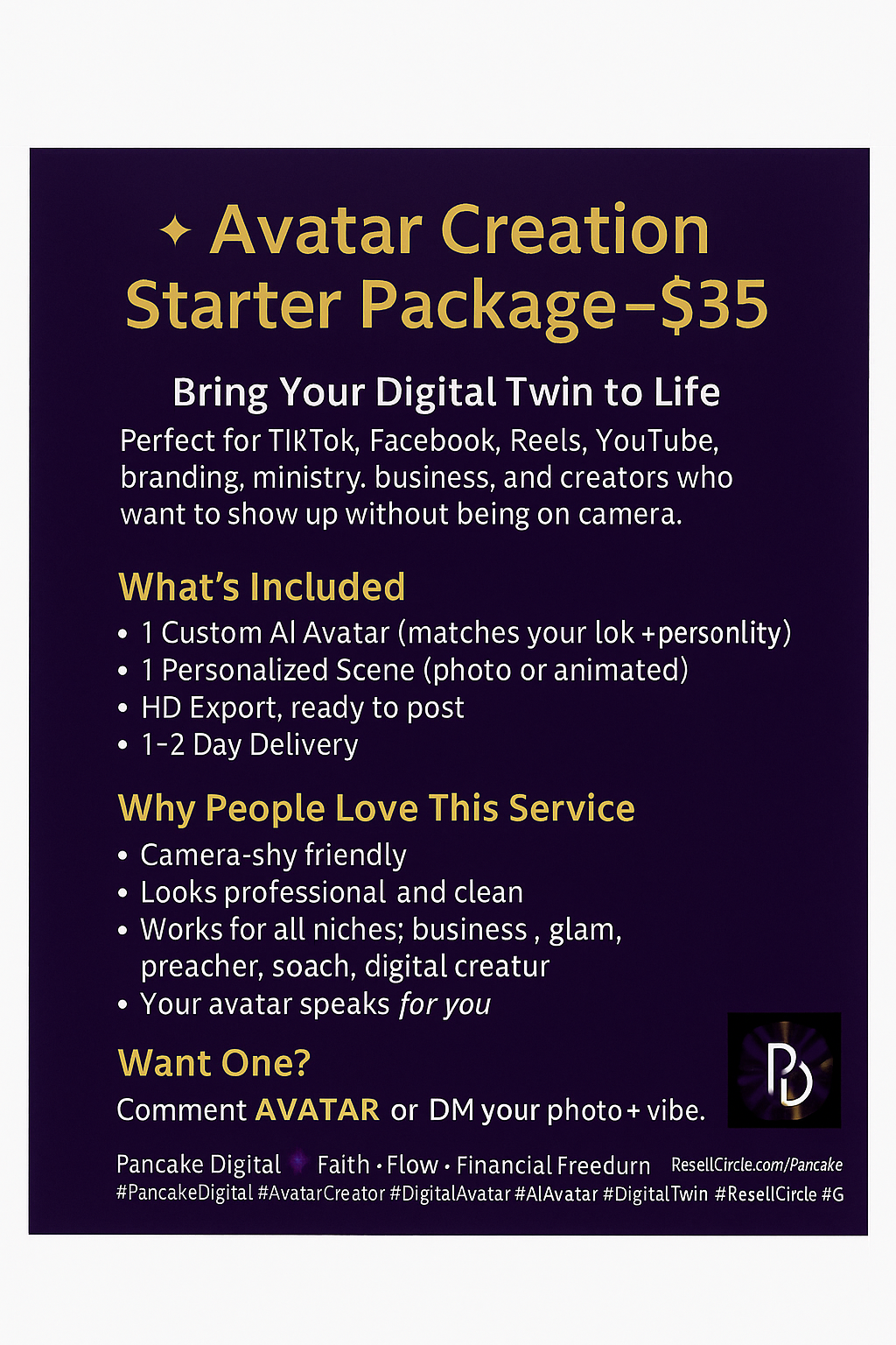 Category: Branding & Design | Branding & DesignPancake Avatar Starter Creation — Custom AI Avatar Creation for Camera-Free Confidence