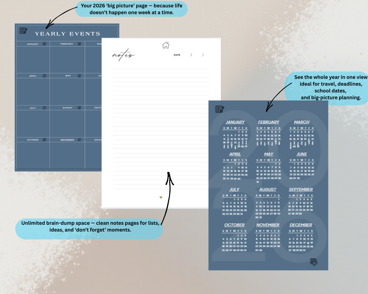 Category: Business PlanningStart strong with a 2026 digital planner- hyperlinked that’s simple, cute, and discreetly organized—built for people who want a clean layout without the overwhelm. This simple monthly digital planner includes a Year at a Glance and a Yearly Events page, plus monthly calendars and notes pages, so you can plan your life without turning planning into a second job. (Cover theme: “New Year, New Goals.”)