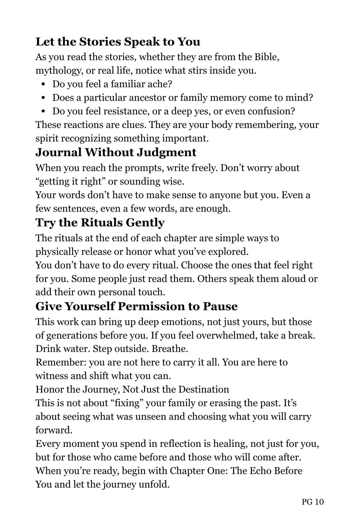 Echoes in the Blood is a guided journal for healing ancestral trauma—grounded in universal law, biblical truth, and soul-deep storytelling. It’s for the one who sees patterns repeating and wonders, “When will it end?”